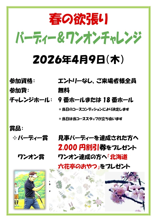 「4月特別企画」として4月9日(木)に1日限りの【 春の欲張りバーディー&ワンオンチャレンジ】を開催いたします!